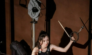 杨幂工字背心造型清爽展现好身材 打架子鼓手臂线条紧致