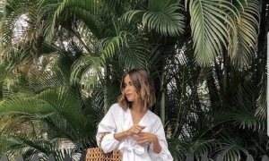 蓝白相配也可以选择蓝色作为底色,胸前勾勒乳白色的花纹,搭配牛仔裤或者阔腿裤都可,舒适又可爱,很有邻家妹妹的感觉。
