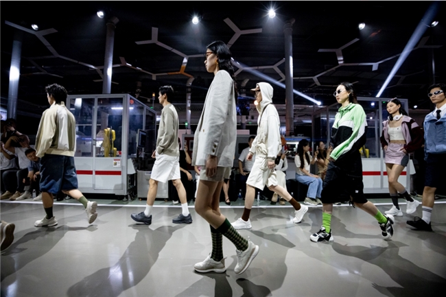 大秀现场,车间工人还原生产流程和日常工作场景,机器生产与手工制作和谐交织,呈现出别具一格的创意氛围和舒适美学。