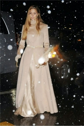 佟丽娅穿白色蝴蝶结连衣裙身姿优越
