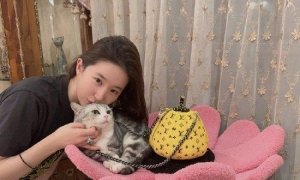 刘亦菲分享日常素颜美照 黑长直发型与猫咪互动眼神温柔
